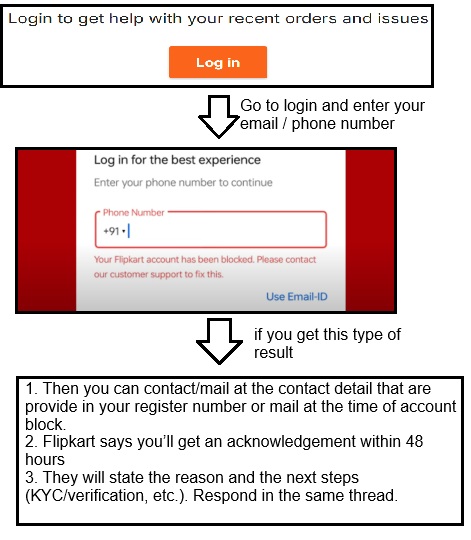 - If not, and it shows that your Flipkart account has been blocked, please contact customer support.