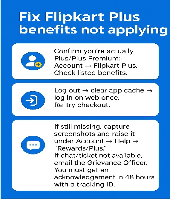 - Confirm you are actually a Flipkart Plus or Plus Premium member: Account → Flipkart Plus and check the listed benefits.